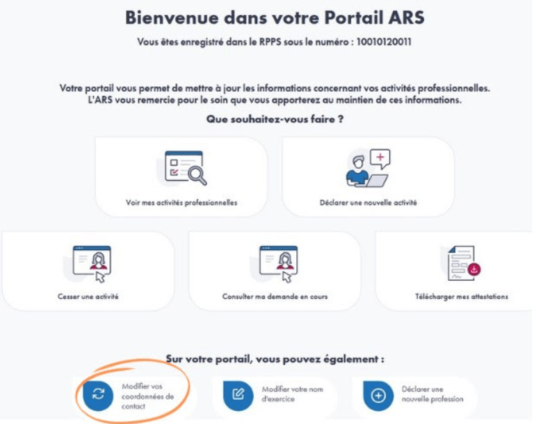 Pour cela connectez-vous au portail d'enregistrement eRPPS pour les Professionnels intervenant dans le système de santé via FranceConnect ou ProSanteConnect avec votre carte CPS (la connexion par eCPS n'est pas fonctionnelle pour l'instant).