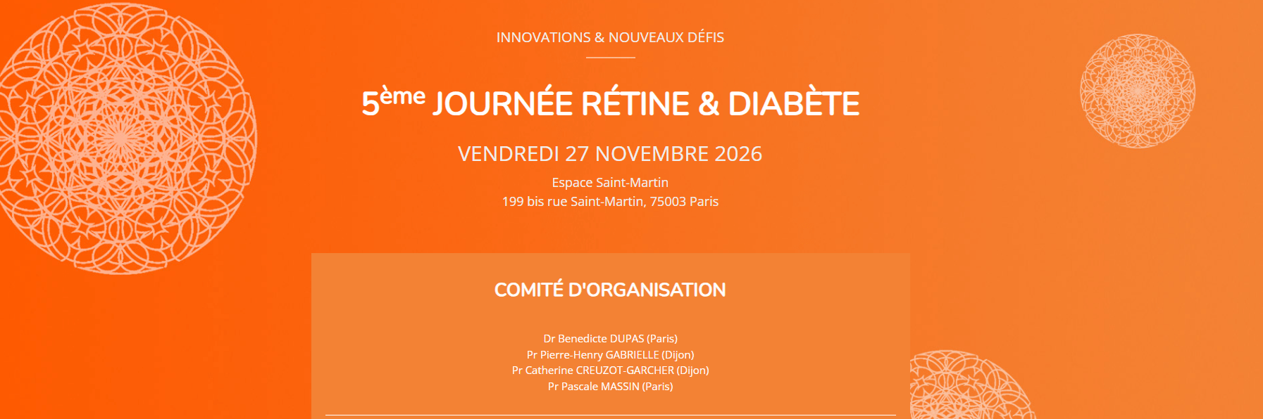 5ème Journée Rétine & Diabète - Vendredi 27 novembre 2026 - Espace Saint-Martin - Paris
